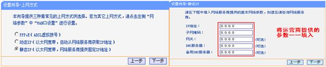 靜態IP要輸入運營商給您的IP地址、網關等參數