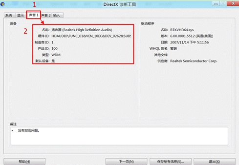 4、點(diǎn)擊“聲音”可以查看主機(jī)的聲卡基本信息。參見下圖