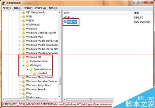 5、在UserList 項的右側窗格中,新建 Dword 32位值,鍵值名更改為administrator,并將它重命名為0,再注銷掉Win7系統即可。