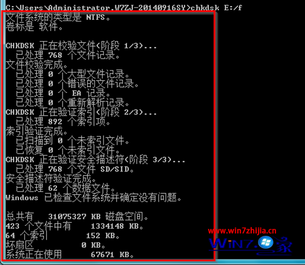 win7系統下利用chkdsk命令快速恢復丟失的磁盤簇的技巧