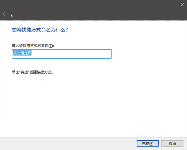 3、點(diǎn)擊“下一步”修改快捷方式名稱后即可完成