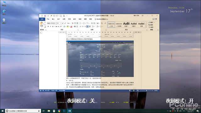 夜間模式啟閉效果對比(左:關 右:開)