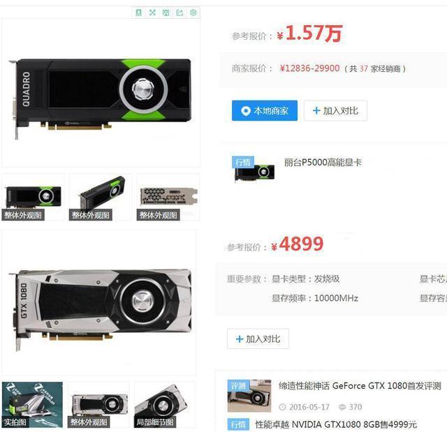 還有人說了,顯卡就是GPU而已啊,為什么都是一樣的GPU,價格卻差那么多。這里要舉例的就是專業顯卡Quadro P5000和游戲顯卡GTX1080的區別的了,他們都是GTX1080,只有頻率上有差別,為什么GTX1080只要4900塊,而Quadro P5000卻要一萬多塊呢?