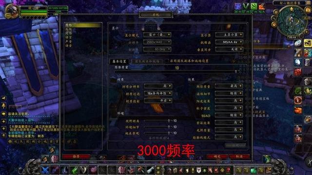 我們先來看看高頻內存與低頻內存對魔獸世界這款游戲的影響,取要塞中同一場景同一設置下的幀數對比,2400頻率內存幀數大約是58幀,而3000頻率達到了67幀。