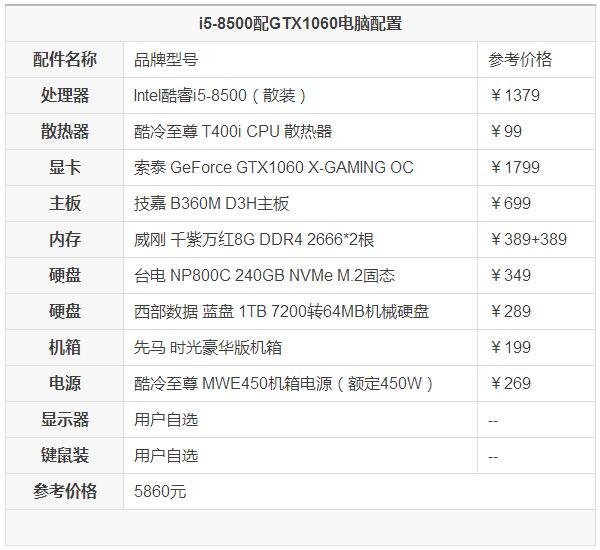 今天分享一套i5-8500配GTX1060組裝吃雞主機配置推薦,對于忠愛N卡的消費者來說,目前GTX2060還沒有發布,所以目前主流依然是GTX1060,好了,具體電腦配置清單如下。...