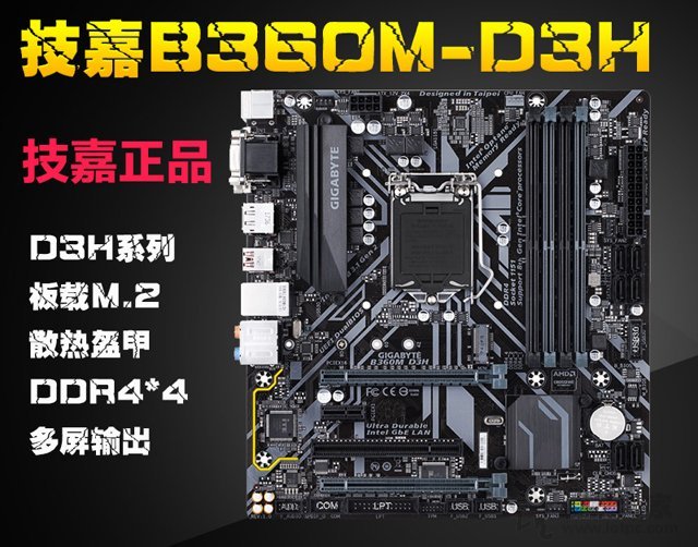 i5-8500定位主流級別,不支持超頻,所以最佳適合B360主板。主板方面,我們選用的是一線品牌技嘉 B360M D3H主板,基于Intel B360芯片組,屬于M-ATX版型,為電競優化了穩定性,提供6組CPU供電堆料強化,保證CPU高頻運行的同時,數字式驅動芯片以及大型雙散熱片設計讓主板保持了穩定,而且采用的長壽命固態電容不爆漿讓玩家得以放心使用,配備4根DDR4內存插槽,支持雙通道,并提供了M.2 SSD插槽,以便大家安裝速度更快的M.2固態硬盤。