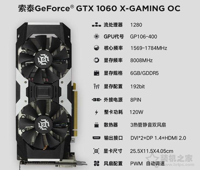 由于GTX2060還未上市,不過上市價格也不會低的,所以現階段主流還是GTX1060 6G,加之GTX1060 6G現在便宜了不少,對于忠愛N卡的消費者來說,十分值得選擇。索泰 GeForce GTX1060 X-GAMING OC顯卡的GPU代號為GP106-400,配備6GB顯存、192-bit位寬,擁有1569-1784MHz核心頻率以及8008MHz顯存頻率,能滿足絕大多數游戲1080P應用。