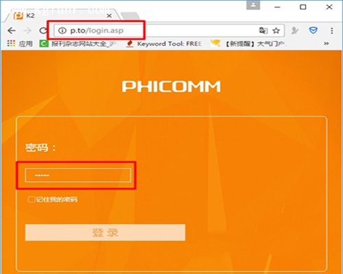 2、在瀏覽器地址欄中輸入第一步中查看到的設置網址,本文中是:p.to——>輸入默認密碼:admin,就可以登錄到設置頁面了。