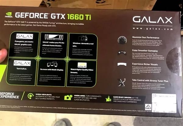 目前網上已經曝光出了多家品牌的GTX1660Ti顯卡,首先是影馳的包裝盒,以往宣傳光線追蹤的地方變成了Turing Shaders,并透露新卡配備兩個90mm風扇、擁有6GB/192Bit GDDR6顯存、支持一鍵超頻、支持DVI/HDMI/DisplayPort三種輸出接口。