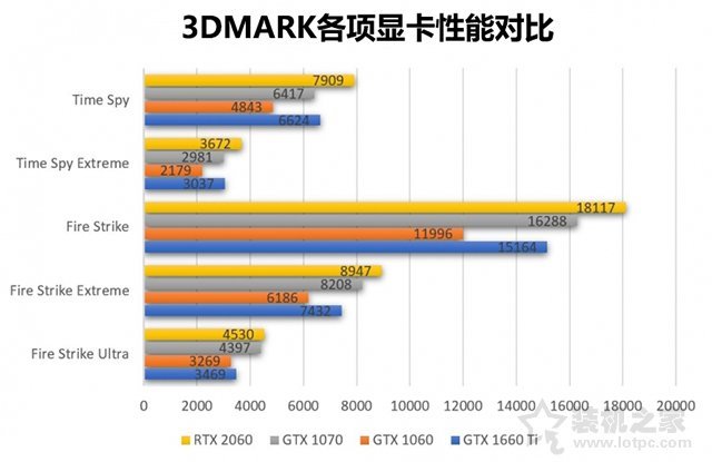 我們再來看看各顯卡在3DMark各項測試環境中的性能對比,本次測試顯卡為GTX 1660 Ti對比GTX 1060、GTX 1070以及RTX2060的3DMark數據對比,提供玩家們參考。