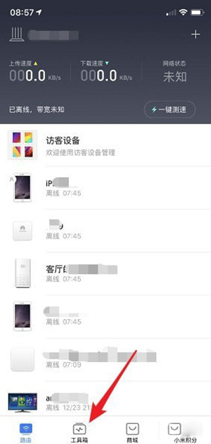 1、首先,先準(zhǔn)備一個(gè)移動(dòng)硬盤,然后打開小米wifi app,看到【工具箱】,進(jìn)行點(diǎn)擊;