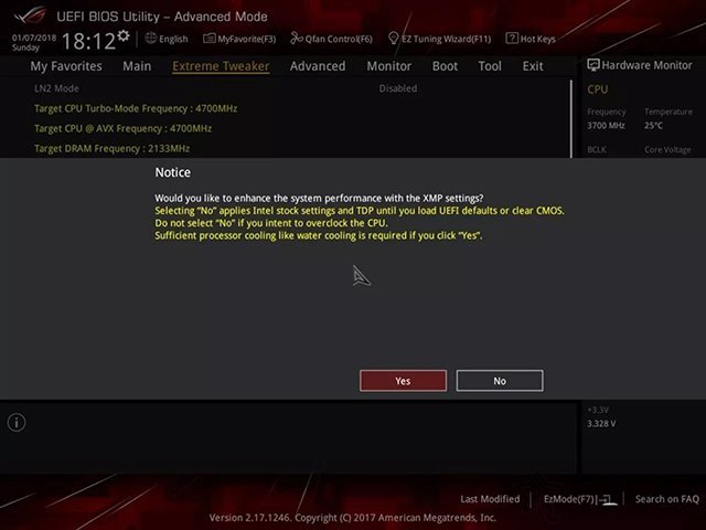 注:不同品牌的主板BIOS、不同版本的BIOS,那么設置也會有所不同,這里以華碩主板BIOS為例,其它BIOS設置大同小異,可以參考,找到XMP模式設置即可。