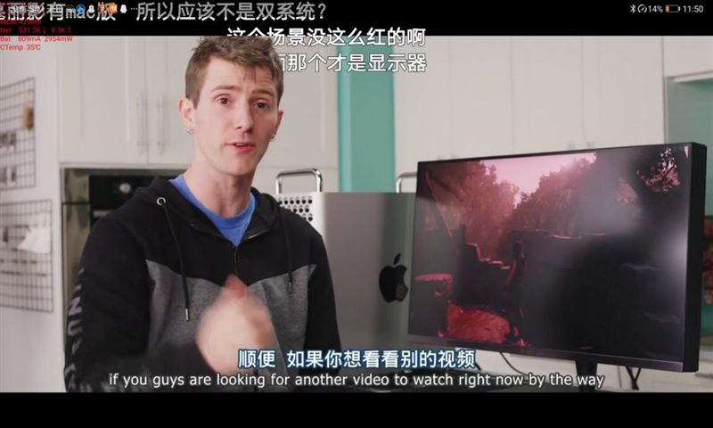 使用bilibili在線播放1080P+的視頻,亮度、音量均設置為50%,播放一段時間后,查看電量的變化情況。