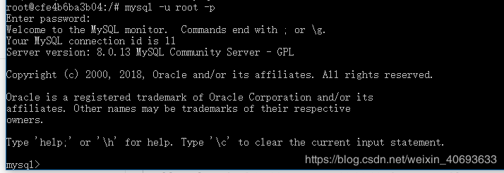 進入MySQl容器:使用的docker exec命令,-it是參數,bash表示創(chuàng)建一個交互界面