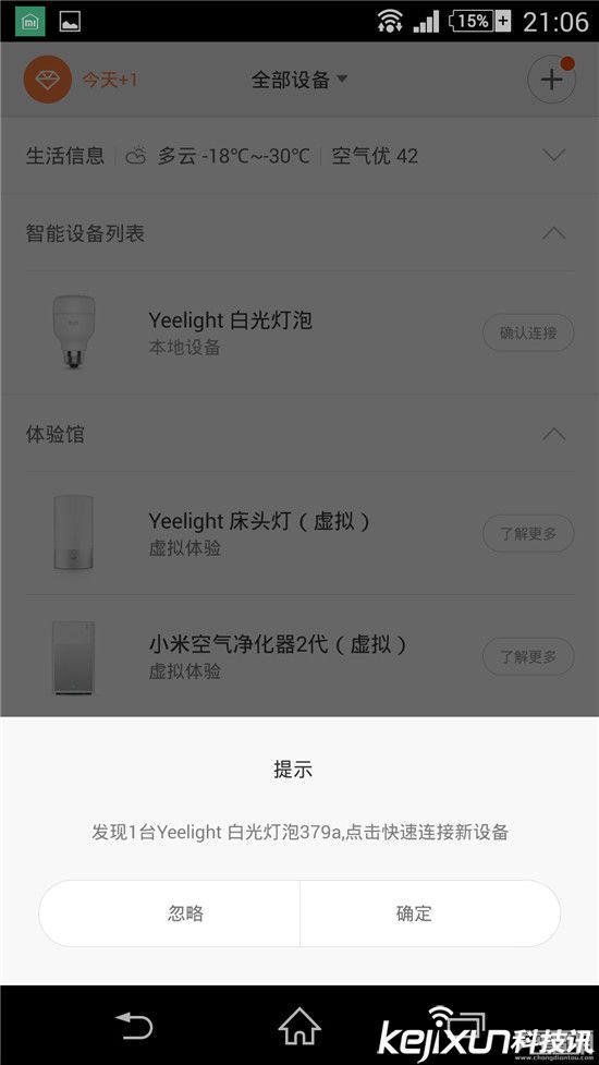 實(shí)際使用,因?yàn)檫@款Yeelight 智能燈泡是小米路由的專屬插件,所以管理操控端被直接集成在小米路由器的app里了。插上適配器后,燈泡會(huì)出現(xiàn)在小米路由的智能設(shè)備列表中,可以在此控制燈泡的開(kāi)關(guān)。過(guò)程中無(wú)需設(shè)定密碼,無(wú)需配對(duì),使用相當(dāng)方便。