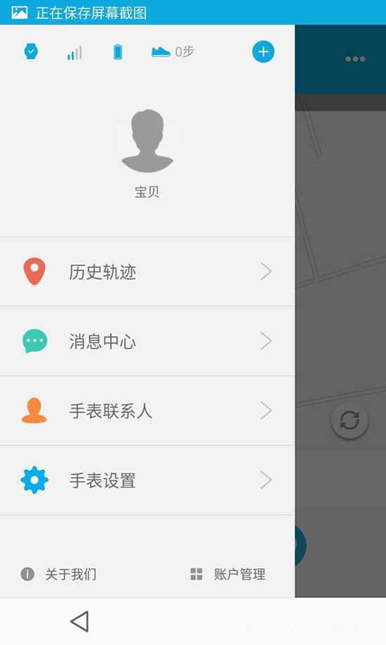 在右上的寶貝管理,其中有歷史軌跡、消息中心、手表聯系人、手表設置四個主要功能。