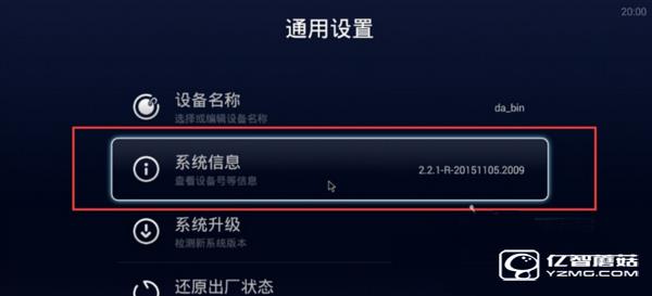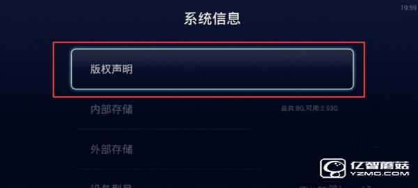 1、首先打開進入盒子的工程模式,打開方法如下:系統(tǒng)設(shè)置——通用設(shè)置——系統(tǒng)信息——版權(quán)聲明!