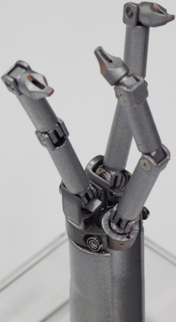 機器人的每只手上都有三種工具,在一定程度上模仿了人手。前兩個工具(食指和拇指)充當鉗子的作用,剩下的中指可安裝任何一種工具,比如刀片、鉤子、灌注裝置、凝固裝置等等。