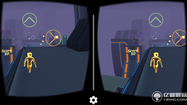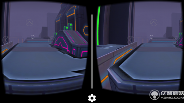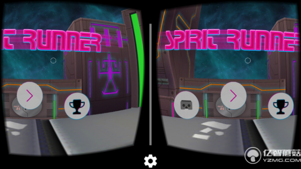 選擇VR模式之后,其屏幕立刻會分成兩個部分,與其他VR游戲以及視頻是相同的,這時將你的手機放在Cardboard 2中就可以直接進行游戲了。操作方法非常簡單,轉動你的腰部和腦袋,將屏幕的中心點放置在相關的選項上就可以了。