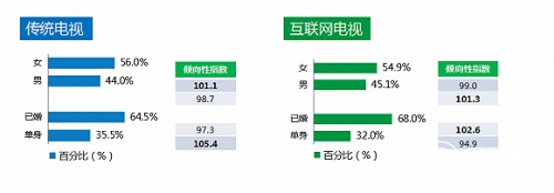 現(xiàn)在很多廣告主還是把更多的眼光和廣告費(fèi)用投在了以“直播”為形態(tài)的傳統(tǒng)電視上,廣告按時(shí)間價(jià)值售賣(mài),廣告主按照時(shí)段進(jìn)行購(gòu)買(mǎi)。但是,由于智能電視的加入和很多家庭電視機(jī)智能化的升級(jí)換代,即使是同一塊屏幕,屏幕本身的屬性和收看的功能場(chǎng)景也發(fā)生了巨大的變化。研究發(fā)現(xiàn),互聯(lián)網(wǎng)電視的受眾有45%是男性、68%已婚、每天收視時(shí)長(zhǎng)在1.7小時(shí)左右,受眾中月收入在6000元以上的占60%,呈現(xiàn)出年輕化、高端化、收視時(shí)間更長(zhǎng)的特征。