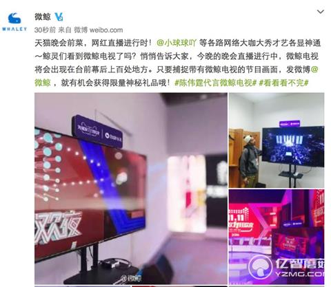 雙十一天貓狂歡夜微鯨電視每分鐘出現1次