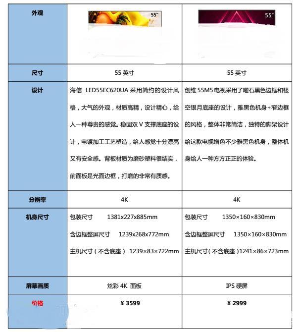 總結:創維 55M5和海信LED55EC620UA兩款電視都是具有傳統電視品牌的質量保障,同時具有高性價比,但是與互聯網電視品牌相比,娛樂性較少,所以更適合送給家中的老人觀看,兩款都是不錯的選擇。
