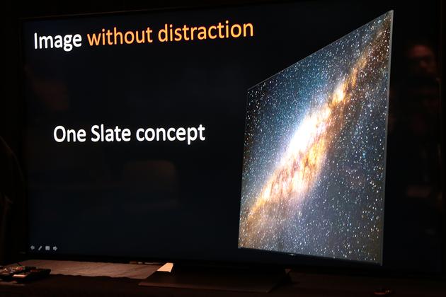 索尼創意中心第一工作室首席創意總監田幸宏崇對新浪表示,這款電視設計的初衷就是想給用戶不被打擾的體驗。所以看不到揚聲器、支架、接口等。甚至將索尼LOGO都使用了不反光的材質,并且至于左下角。