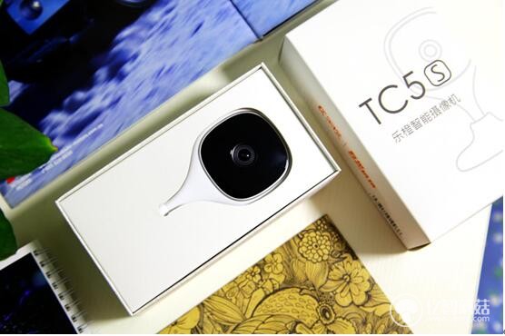 白色包裝盒簡約而不簡單,涂鴉形式的暗紋使得其看起來更為精致。一比一大小的產品圖示(簡筆畫)和攝像機的具體型號(TC5s)印在包裝盒正面,產品的相關參數和廠商信息則設置在側邊位置。
