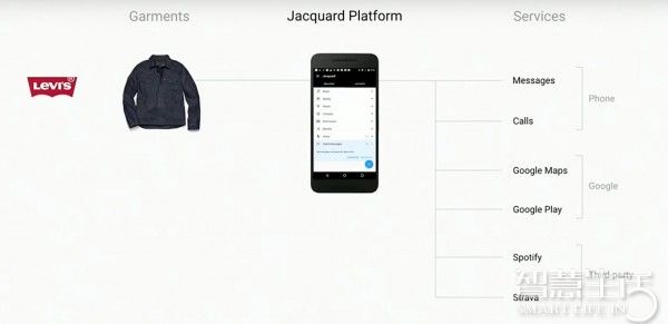 這件夾克使用的紡織品內(nèi)含有特質(zhì)的電子元,具有輕觸式遙控功能,專為自行車愛好者打造。這款外套能通過無線與智能手機(jī)連接,穿戴者只需通過觸控夾克袖口的 "Jacquard Tag"織物手勢傳感器 ,就能進(jìn)行回復(fù)電話,進(jìn)行Google Maps逐向?qū)Ш降雀鞣N操作,用戶可以水洗這款智能牛仔夾克。