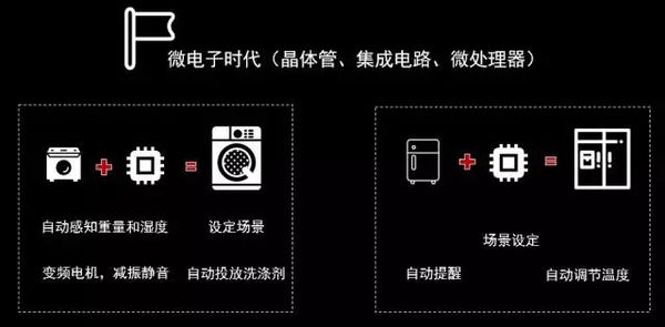 其實,我們深入思考,正是因為有初代家居對市場帶來新的價值,以及足夠的市場滲透率,致使,在微電子技術和處理芯片大發展的時代,家電才會最先利用技術進行升級。