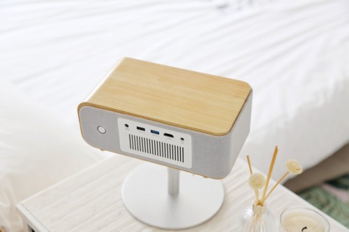 布藝+木藝這種經典搭配組合,除了能夠帶給我們賞心悅目的產品外觀,在視聽體驗這塊也是有一定的buff加成,神畫Q1內置了2個5W功率的揚聲器,搭配木質機身所呈現出來的聲色是金屬機身所無法達到的,神畫Q1所配備的2.0左右聲道分制音響能夠讓我們在體驗大尺寸畫面的同時,享受一場視聽方面的饕餮盛宴。