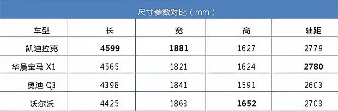不少人選擇SUV最主要的原因就是外觀大氣以及空間充裕實用,作為純正美國血統的凱迪拉克深諳此道。雖然全新XT4定位于緊湊型SUV,但它真正的尺寸卻一點也不“緊湊”。在同級別SUV中,XT4的尺寸參數表現優異,即使對上加大尺寸的華晨寶馬X1也并不遜色。