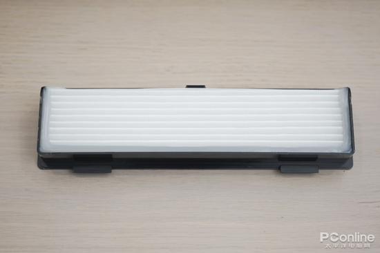 滾刷部分采用了膠毛混合,拆卸和更換都非常便利。膠刷的好處是不怕毛發纏繞,缺點就是聲音大、對灰塵的清潔能力不如毛刷。毛刷的缺點就是怕毛發纏繞,優點就是聲音小、對灰塵清潔得更干凈。而膠毛混合滾刷就是兩者的綜合體,表現介于兩者之間。