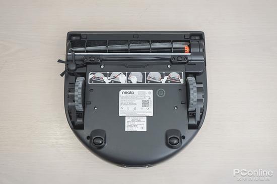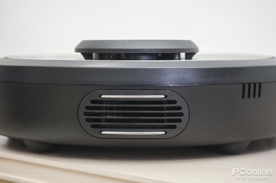 后側是出風口,還有兩個金屬長條,用于與底座接駁充電。在實際體驗時,Neato掃地機器人D7 強勁的動力帶來出風口很大的風力,掃地機從腳邊路過感覺像移動風扇一樣。