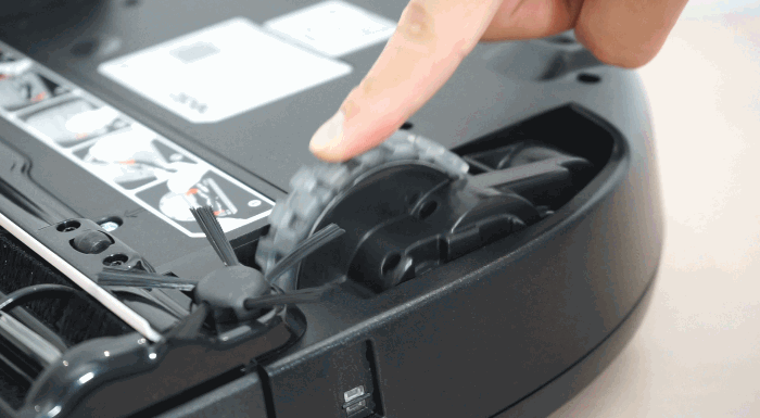 Neato D7掃地機器人 的邊刷通過磁鐵固定,在前置滾刷需要清潔時可以輕松取下并更換。邊刷的作用是清理墻角部分的垃圾,Neato由于D型設計,本身就用很長的滾刷,配合右側前置的邊刷,能夠輕松解決墻角難題。