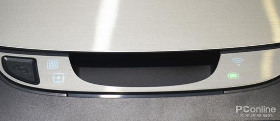 集塵盒嵌入在機身頂部中央的位置,卡扣式的設計,可以非常輕松的揭開。透明材料制成的集塵盒的容積非常大,也十分方便觀察是否需要清理集塵盒。