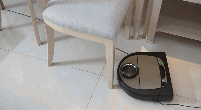 地上散落了多跟電線,哪怕是電線快把掃地機(jī)纏住了,Neato掃地機(jī)器人D7 也能憑借出色的懸掛性能逃脫出來。