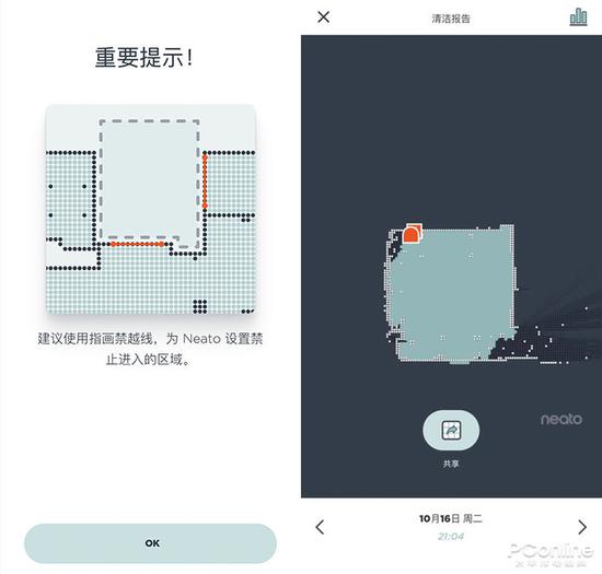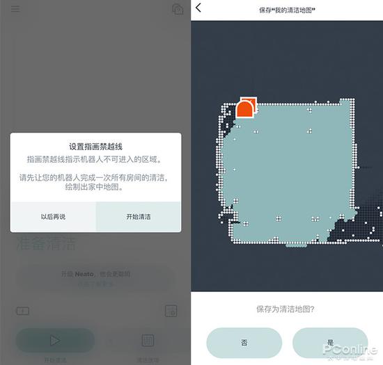 APP設(shè)計也如同Neato的產(chǎn)品一樣簡介優(yōu)雅,首次使用掃地機(jī)的時候會提示讓掃地機(jī)先在整個屋子全面工作一次,需要打開房門,移除障礙物。清掃完畢之后APP會提示會提示是否保存為清潔地圖,“是”,然后生成一個家中的地圖到服務(wù)器。聽聞Neato服務(wù)器在美國,但是我測試感覺上傳和下載速度都非常不錯。話說這個底圖的準(zhǔn)確度相當(dāng)驚人,這個區(qū)域內(nèi)的沙發(fā)、凳子腿、墻角這些細(xì)節(jié)都能在地圖中清晰分辨。