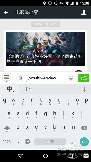 這個方法適用于Android 5.0及以上版本的安卓系統、微信6.1及以上版本的微信,不適用于iOS版!在微信任意聊天窗口中(公眾號服務號也可以),輸入“//multiwebview”,點擊發送,就成功激活微信隱藏的多窗口切換功能了!