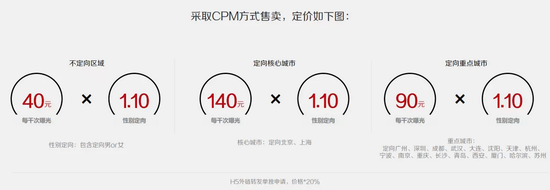 根據(jù)騰訊最新公布的財(cái)報(bào),微信和WeChat的合并月活躍賬戶數(shù)已經(jīng)達(dá)到了6億。對于廣告主來說,微信里那些比較年輕、用戶質(zhì)量又相對較高的用戶應(yīng)該是不愿意錯(cuò)過的目標(biāo)。下面這張圖是微信朋友圈廣告的售賣方式,看完之后你應(yīng)該能感覺到它有多燒錢。