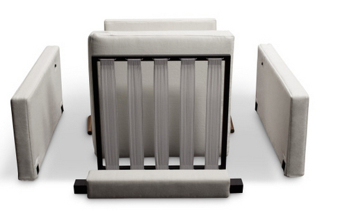 “Campaign”家具與眾不同的是它的設(shè)計(jì)組裝過程及其簡單,而且節(jié)省了運(yùn)輸成本。Sewell設(shè)計(jì)的家具在不使用工具的情況下幾分鐘之內(nèi)就可以完成裝配和拆卸。更重要的是,拆卸后的家具完全可以放進(jìn)盒子并通過UPS和聯(lián)邦快遞發(fā)貨,解決了大型家具令人頭痛的運(yùn)輸問題。
