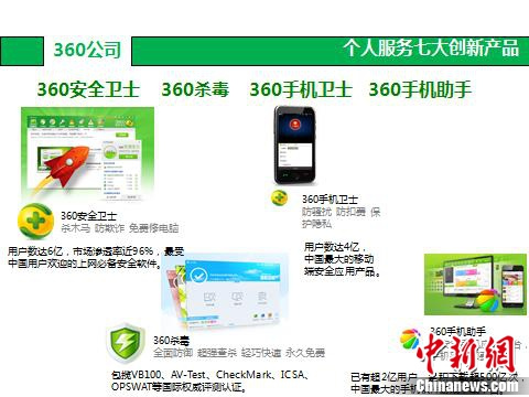 在移動端,使用360手機衛士的智能手機用戶總數在2015年6月達約7.99億,2014年6月為6.41億,同比增長24.6%。