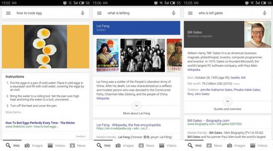 另外,該功能還和谷歌的語(yǔ)音助手Google Now進(jìn)行了緊密的結(jié)合,在移動(dòng)端使用語(yǔ)音進(jìn)行搜索時(shí),Google Now還會(huì)將一部分答案直接讀出來(lái)。