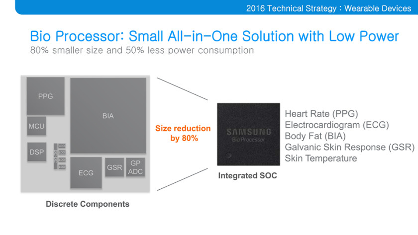 除了這款相機(jī)傳感器,三星還發(fā)布了專為可穿戴設(shè)備設(shè)計(jì)的“生物處理器”。簡(jiǎn)單來(lái)說(shuō),就是將心率傳感器、心電監(jiān)護(hù)傳感器、皮膚溫度傳感器等組件整合到一顆單獨(dú)的處理器里,獨(dú)立完成健康數(shù)據(jù)的分析。通過(guò)整合之后,這顆處理器的功耗將降低50%,處理器體積比之前傳感器分散放置時(shí)減少80%,對(duì)于體積較小、電池容量有限的可穿戴設(shè)備而言,這顆處理器必將大受歡迎。(編譯/大志)