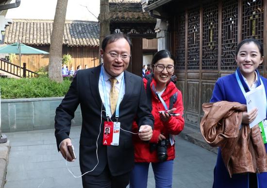 才第一天到烏鎮,“紅衣女子”就采訪到多位大佬。