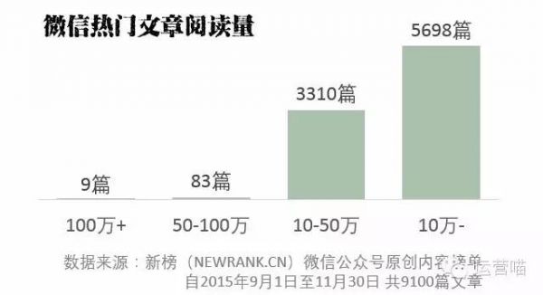 文章由最近三個月中的微信公眾號原創(chuàng)內(nèi)容榜單篩選而來,包括每天閱讀量最高的前100篇文章,共計(jì)9100篇微信熱門文章。