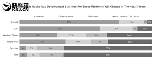 PS:調查樣本中,21%從事WindowsPhone開發,57%為iOS,86%為Android。
