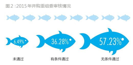 從審核單數和無條件通過率來看,2015年均較2014年有較大程度的成長。雖然否決單數和否決率也有所變化,但整體而言,證監會對上市公司并購重組的行為還是持積極態度。