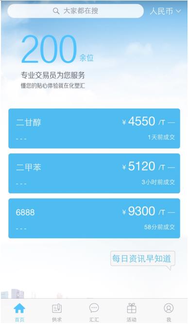 以化塑匯“匯匯”APP為例,這是一個雙向互動的移動在線交易平臺,它涵蓋行業(yè)新聞資訊、供求信息、企業(yè)活動、行程規(guī)劃等內(nèi)容。客戶通過使用“匯匯”APP,即可隨時隨地了解行業(yè)上下游產(chǎn)業(yè)動態(tài),以及完成在線交易、在線發(fā)布、在線溝通等在線化服務。