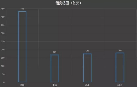 四家快遞公司當中,順豐是第一梯隊,另外3家為第二梯隊。沒有算上中通、宅急送等其他快遞公司,僅僅這4家已宣布借殼上市的快遞公司,總估值就已經(jīng)高達近1000億元(957億)!